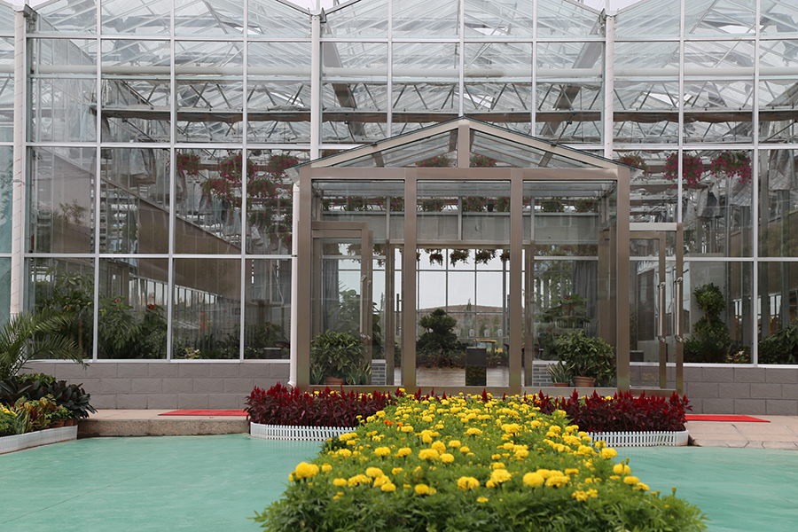 智能溫室大棚占地約6000平方米,分為一號廳和二號廳。其中一號廳是新建的有錯層的玻璃溫室,分為盆栽花卉、盆栽果樹區(qū)、沙生植物區(qū)、熱帶風(fēng)情區(qū)、家庭園藝區(qū)等功能區(qū)。二號廳由舊溫室改造而成,頂部為陽光板,四周立面為玻璃,配置了智能控制系統(tǒng),有無土栽培區(qū)、育苗區(qū)、采栽體驗區(qū)等功能區(qū)。智能溫室全部配備了內(nèi)、外保溫系統(tǒng),冬季保溫,比普通溫室更節(jié)能。溫棚內(nèi)移動苗床一次育苗30萬株,可供給巴彥霍德406座溫棚,一定程度上帶動了農(nóng)民增收。不論是熱帶植物、水果還是沙漠植物,在這里你可以一覽無余,一年四季感受綠色勃勃生機。