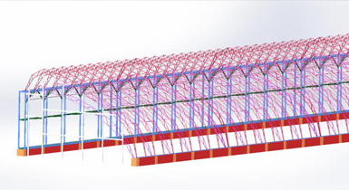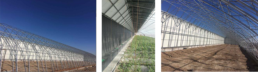 該溫室骨架為熱鍍鋅鋼材焊接,后墻為熱鍍鋅鋼材組裝,采用彩鋼板后墻保溫和相變蓄熱系統(tǒng)代替土墻和磚墻等蓄熱體,解決裝配式日光溫室的蓄放熱問題,實現(xiàn)日光溫室部件的工廠化生產(chǎn)和安裝的標(biāo)準(zhǔn)化裝配。