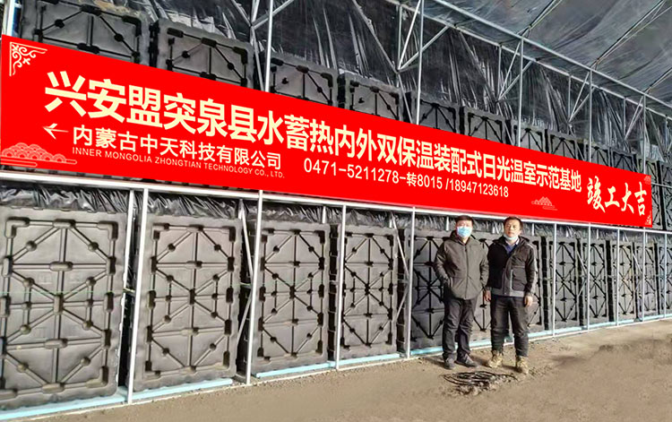 水蓄熱內(nèi)外雙保溫裝配式日光溫室是由內(nèi)蒙古農(nóng)業(yè)大學(xué)與內(nèi)蒙古中天科技有限公司聯(lián)合研發(fā)完成,并已在東北、西北、華北等地區(qū)進(jìn)行了大面積的示范推廣。該溫室集成了10多項(xiàng)國(guó)家專利技術(shù),實(shí)現(xiàn)了北方寒冷地區(qū)冬季不加熱正常生產(chǎn)果菜類蔬菜,對(duì)于推動(dòng)設(shè)施蔬菜產(chǎn)業(yè)發(fā)展及帶動(dòng)當(dāng)?shù)剞r(nóng)民增收致富有著非常重要的意義,該溫室具備以下特點(diǎn):