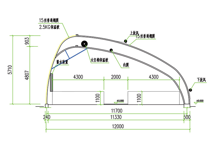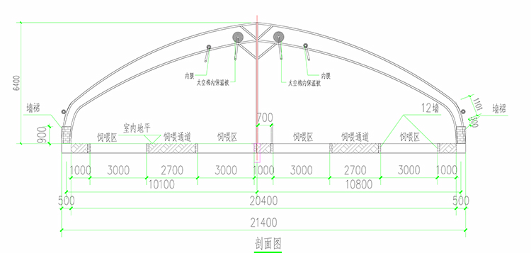 新型陽光養(yǎng)殖棚舍系列產(chǎn)品剖面圖