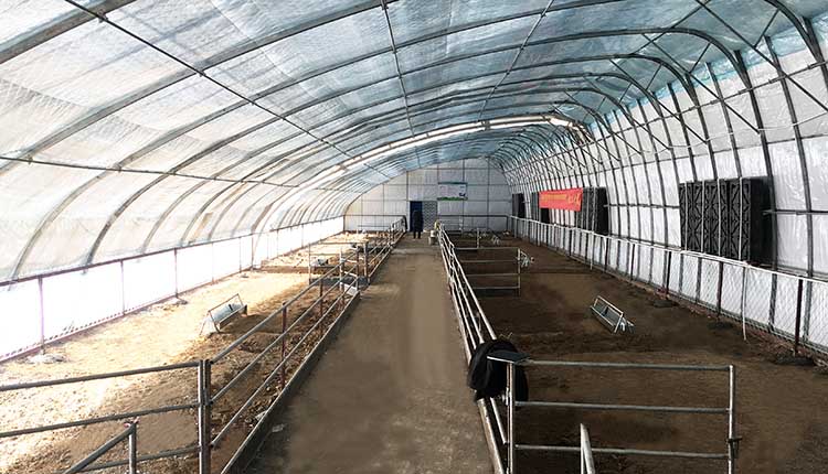 5.新型畜牧棚舍內(nèi)部可以通過開合內(nèi)保溫被進(jìn)行遮陰和防露。