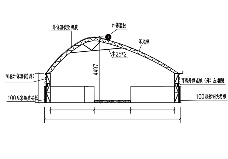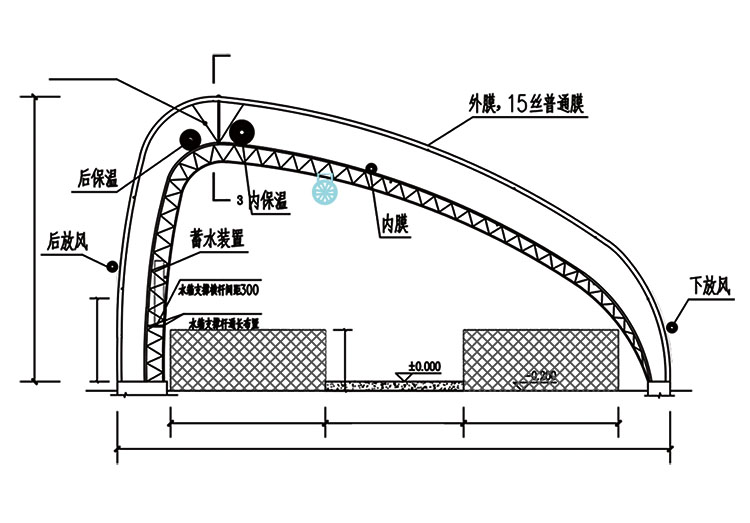 新型陽(yáng)光養(yǎng)殖棚舍系列產(chǎn)品剖面圖
