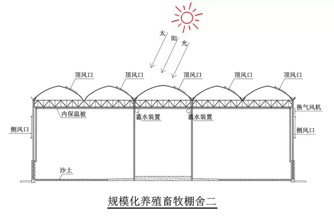 進行畜牧養(yǎng)殖的溫室稱為畜牧養(yǎng)殖溫室。配備智能控制系統(tǒng)的畜牧棚舍稱為智能保溫陽光畜牧棚舍。棚舍(內蒙古畜牧棚舍)整體采用鋼架結構,輕便耐用;四周及頂部薄膜覆蓋;后墻及頂部后坡整體覆蓋毛氈型保溫被;頂部及四周設置通風口;棚舍內部在頂部及四周有保溫被;桁架上方設置接滴露薄膜及導流槽;內部設置一地下水池,供牛羊飲水。為節(jié)約投資可連棟使用。特別適用于大型畜牧養(yǎng)殖企業(yè),單棟適用于大跨度不同禽類的單獨養(yǎng)殖。