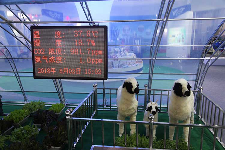 參展商喬曉雪介紹,智能棚舍可以科學(xué)設(shè)定適合牛羊生長的光照、溫度和濕度,棚舍內(nèi)安裝的監(jiān)測器24小時實時監(jiān)控。當(dāng)發(fā)現(xiàn)舍內(nèi)環(huán)境不適宜時,將自動開啟通風(fēng)換氣系統(tǒng),實現(xiàn)了牛羊養(yǎng)殖的機械化、自動化和智能化,解決了冬季保溫、母畜接羔成活率、掉膘、飲用溫水等問題,實現(xiàn)了節(jié)約人力和有效生產(chǎn)。