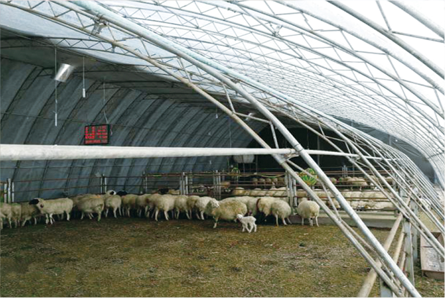 新型膜結(jié)構畜禽棚舍,采用半透明頂棚和大跨度熱鍍鋅鋼結(jié)構,有利于自然光線進入舍內(nèi),降低白天照明能耗,同時,大跨度設計利于空氣流動和通風,能夠為禽畜提供一個明亮的生活環(huán)境。